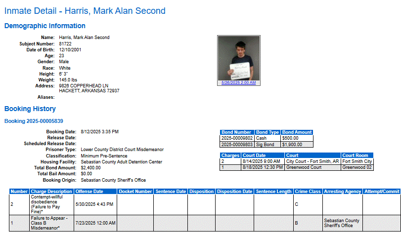 Sebastian County Mugshots: August 12, 2025Dennis McCaslinAug 13, 20251 min read©2024 Today in Fort Smith.