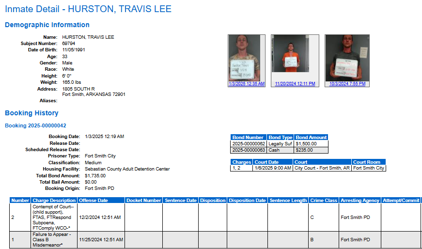 Sebastian County Mugshots: January 3. 2025