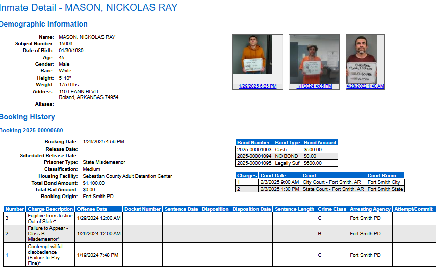 Sebastian County Mugshots: January `9,, 2025