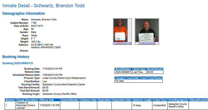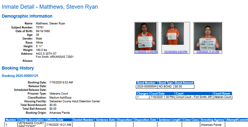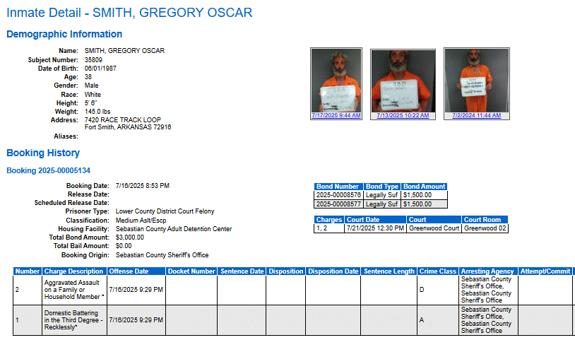 Sebastian County Mugshots: July 17, 2025