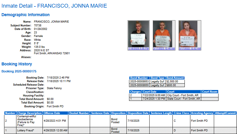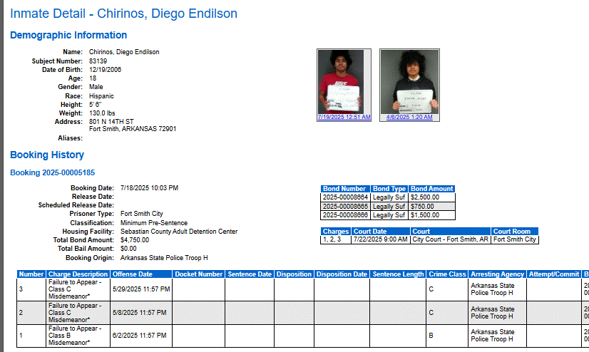 Sebastian County Mugshots: July 18, 2025