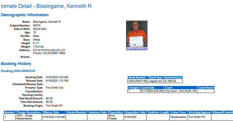 Sebastian County Mugshots: June 16, 2025