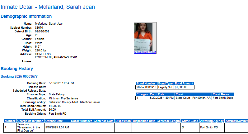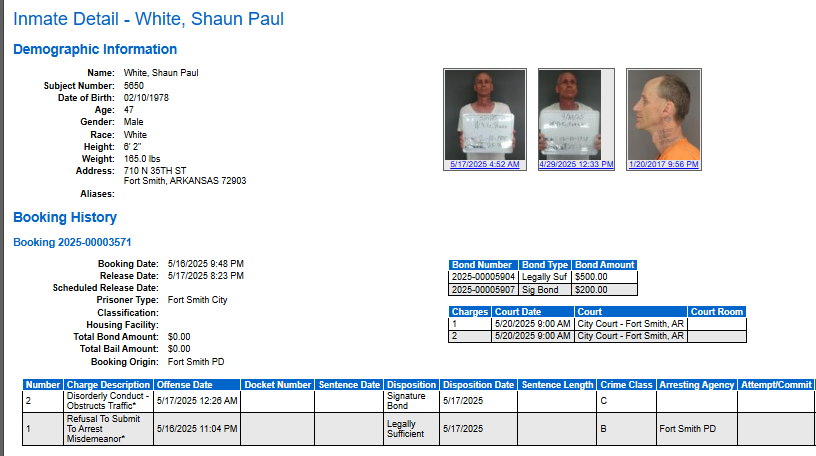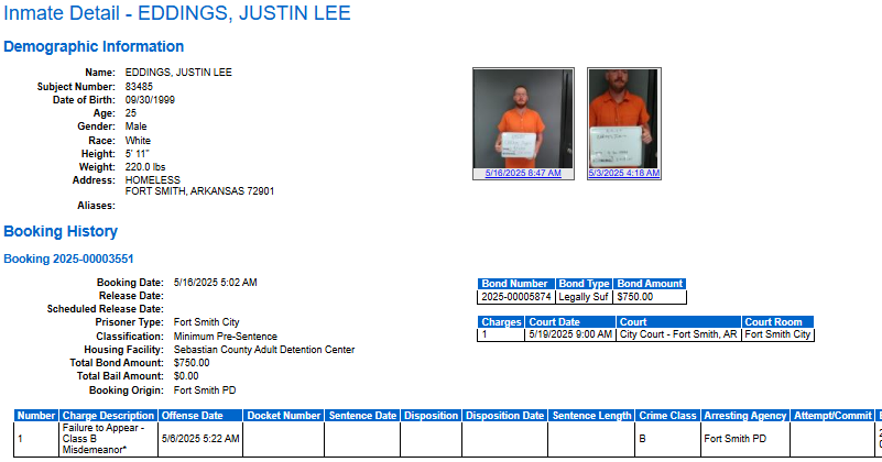 Sebastian County Mugshots: May 16 2025