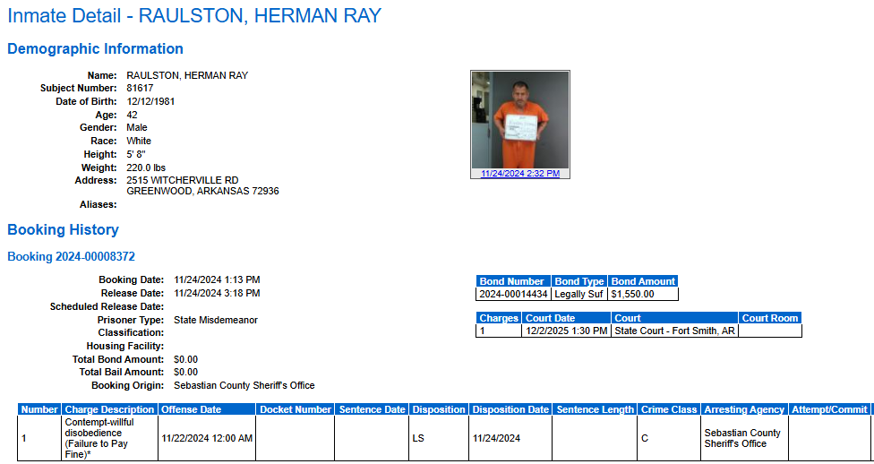 Sebastian County Mugshots: November 23-24, 2024