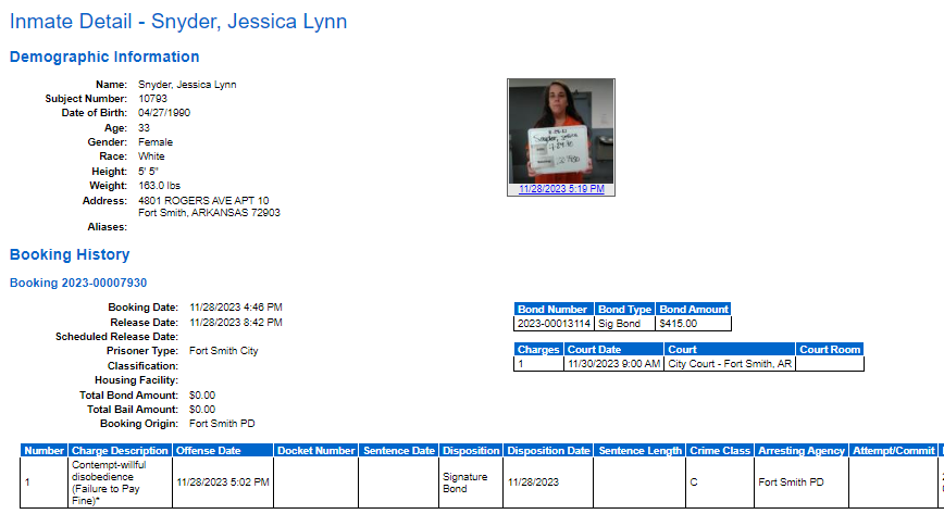 Sebastian County Mugshots: November 28, 2023