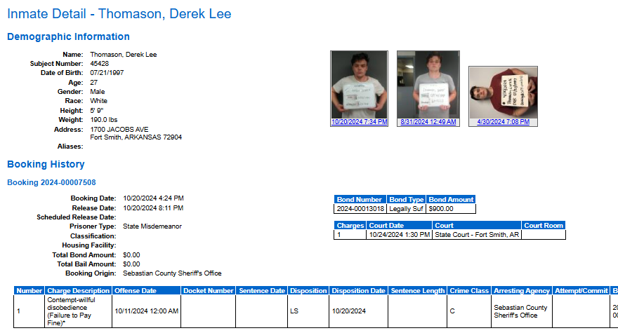 Sebastian County Mugshots: October 20, 2024