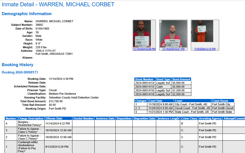 Sebastian County Mugsiohts: November 14, 2024